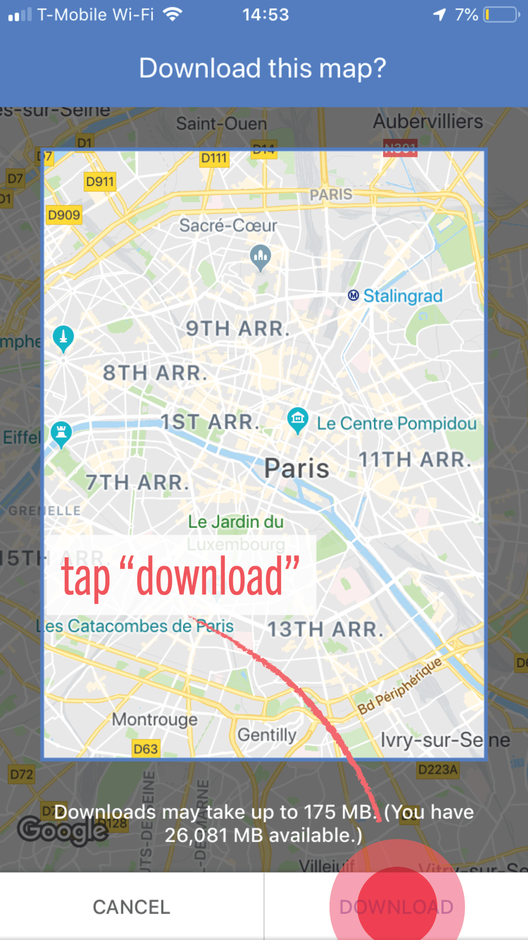 I’ve incorporated the habit of caching maps into my trip prep routine! Since the files can be pretty big, I download them while I’m packing my bag. After all, you never know how good (or awful) the wifi will be at the airport or at your hotel. Here are some screenshots on how to cache maps: