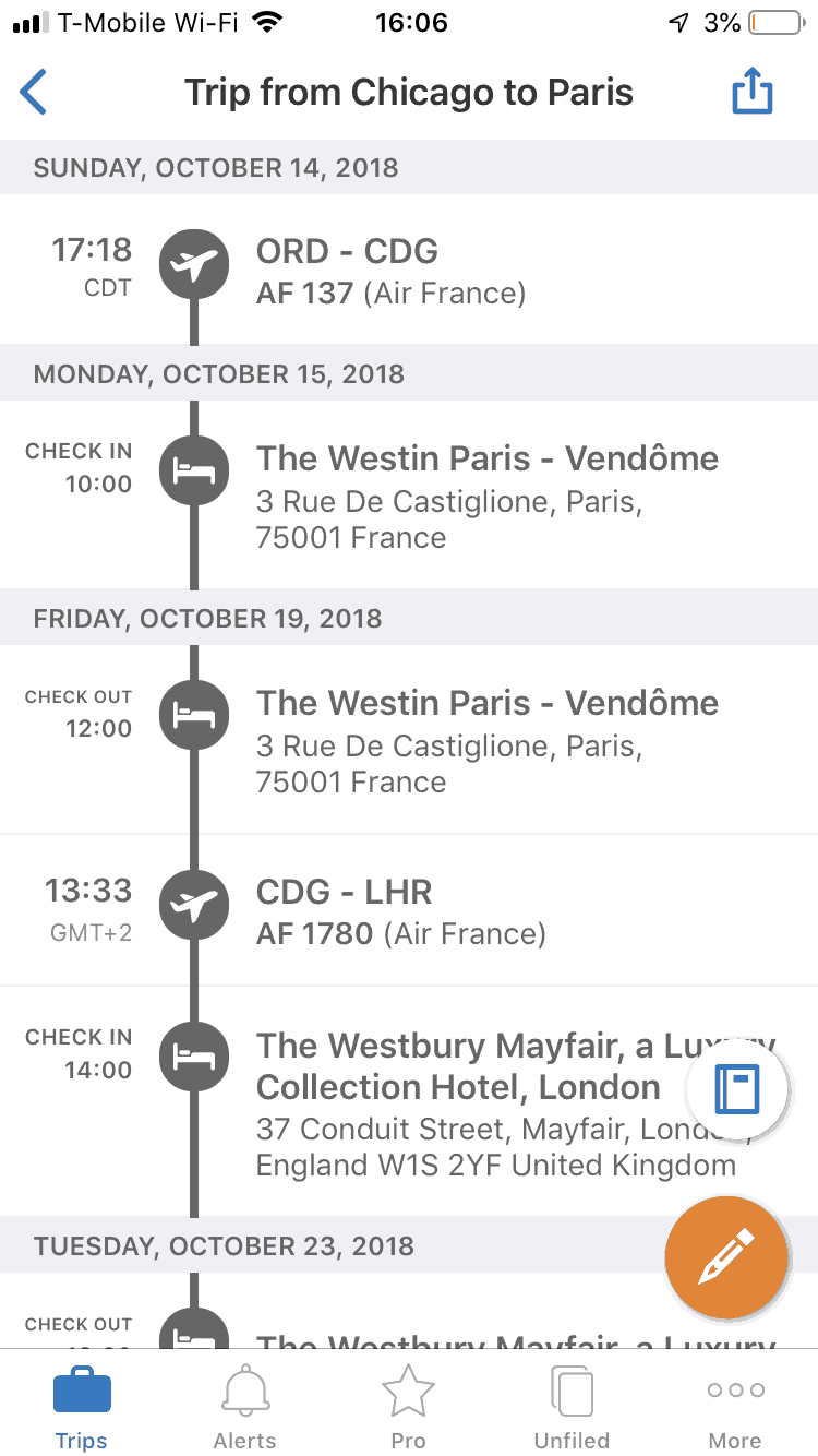 TripIt is an app I came to know through work. My company has a business account with TripIt that gives me access to TripIt Pro, which is full of super useful resources for when I travel.