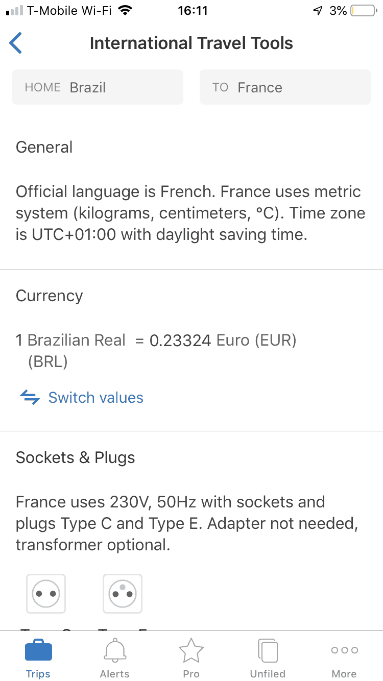 One of the most recent updates that made me love TripIt even more is the “International Travel Tools” section. It gives you important details that I would spend a lot of time researching before, all in one place! The kind of plug, the current exchange rate, the time zone, where the nearest US embassy is, necessary vaccines, etc… Have you ever gotten to a new country, gone out to eat, and thought “Omg, how do tips work here?!” TripIt will tell you that as well. It’s so, so useful, and I love it!